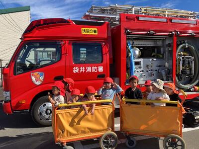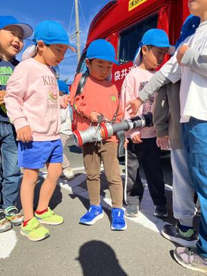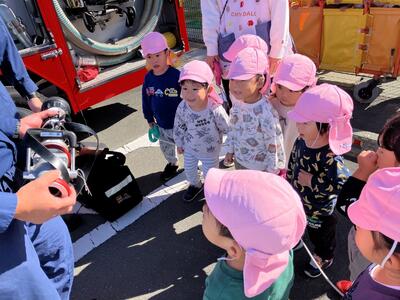 その後は消防車や消火設備を見せていただき、とても嬉しそうな子どもたちの笑顔が見られました。